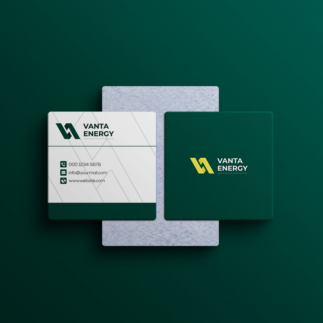Vanta Energy is a modern, innovative brand specializing in solar energy solutions. The logo features a sleek "VA" symbol, signifying energy efficiency and progress. It reflects sustainability and reliability, aligning with Vanta Energy's commitment to a sustainable future. Visuals are a demo; full brand details remain private to protect client confidentiality
